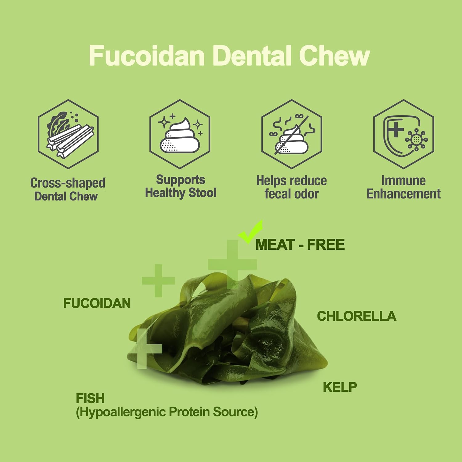 - Powerful Immune Support: A blend of Fucoidan and Chlorella—nutrient-rich seaweed superfoods—to help strengthen your dog’s immune system and overall wellness.